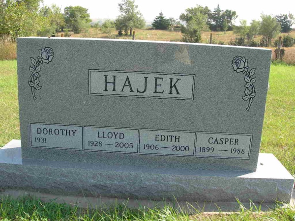 - Birth Date:8/20/1899Death Date:11/20/1988Spouse:Edith AndersonParents:Kaspar and Mary (Zeman) HajekChildren:LloydObituary:Notes:Grave location:Block 2, Lot 4, Row 10, Grave 4