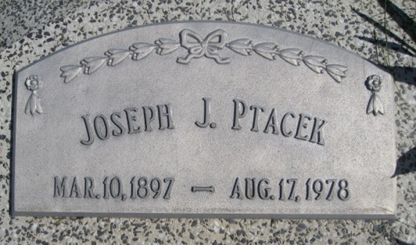 - Birth Date:3/10/1897Death Date:8/17/1978Spouse:HedvikaParents:Joseph and Anna (Jelinek) PtacekChildren:Joseph L.Obituary:Grave location:Block 8, Lot 2, Row 2, Grave 1