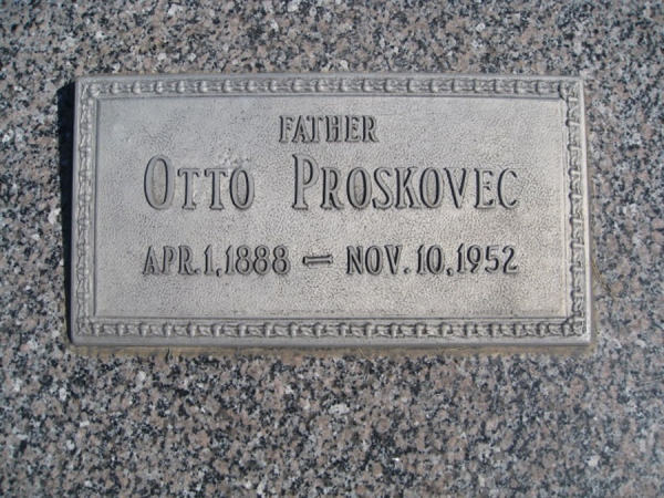 - Birth Date:4/1/1888Death Date:11/10/1952Spouse:Ludmila Osmera ProskovecParents:John and Matilda ProskovecChildren:Matilda, ErnestObituary:Notes:Grave location:Block 9, Lot 3, Row 2, Grave 1