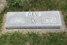 - Birth Date:1/6/1928Death Date:4/14/2020Spouse:1. Harold Rowley; 2. Raymond H. GeuParents:Elton Robert and Undine Evelyn(Dowers) SteinkrausChildren:Bobette(Ferguson), Keith Rowley, Calleen(Callahan), DeWayne Rowley, Wendell Rowley, Thiry(Kern)Obituary:Notes:Grave location:Block 1, Lot 33
