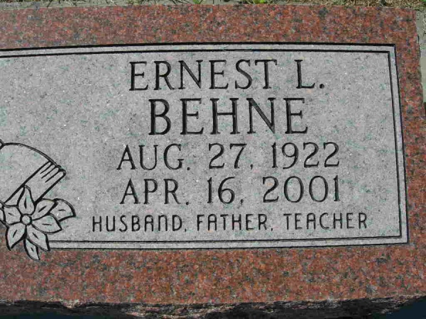 - Birth Date:8/27/1922Death Date:4/16/2001Spouse:Genevieve H. (Vrbka) BehneParents:George and Mary (Liska) BehneChildren:Kevin, Linus, Mary Ellen, Ann Lorette (Bachman)Obituary:Notes:Grave location:Block B28, Lot 1