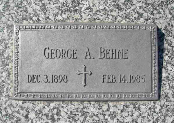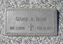 - Birth Date:12/3/1898Death Date:2/14/1985Spouse:Mary (Liska) BehneParents:Andrew and Julia (Toman) BehneChildren:Ernest, George J., Donald, DeanObituary:Notes:Grave location:Block B26, Lot 6
