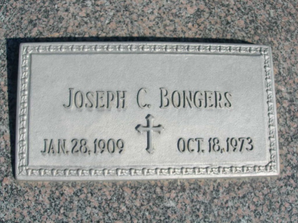 - Birth Date:1/28/1909Death Date:10/18/1973Spouse:Mary Ann (Kastl) BongersParents:Jacob and Barbara (Abraham) BongersChildren:Glenn, ErnestObituary:Notes:Grave location:Block D21, Lot 1