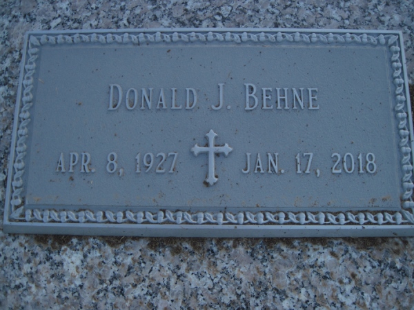 - Birth Date:4/8/1927Death Date:1/17/2018Spouse:Martha ZavodnyParents:George and Mary (Liska) BehneChildren:Donald, Duane, Doug, Darlene(Trojan), Denise(Schroeder), DavidObituary:Notes:Grave location:Block B26, Lot 5