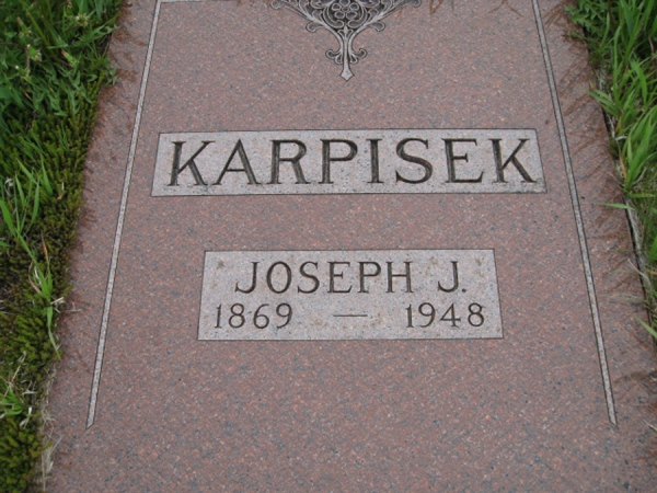 - Birth Date:1869Death Date:1/18/1948Spouse:Marie HajekParents:Frantisek and Antonie (Kominek) KarpisekChildren:Marie, Mrs. A. C. Aubesten, Mrs. Harry Ostrum, Anthony, Ivan, William, George.Obituary:Notes:Grave location:Section North, Lot 2