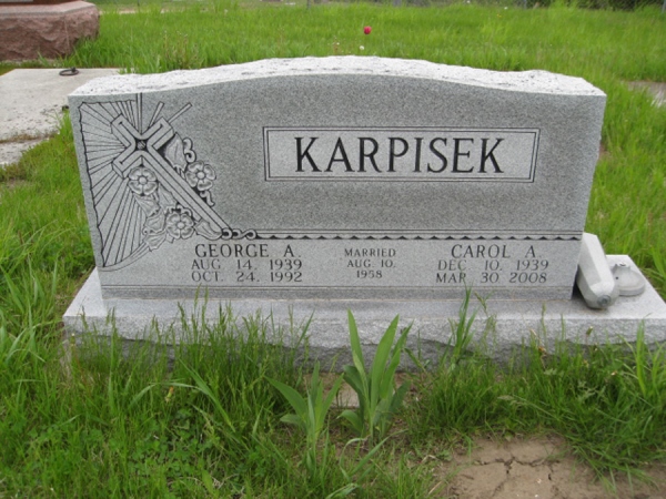 - Birth Date:8/14/1939Death Date:10/24/1992Spouse:Carol A. EgglesonParents:George S. And Lydia (Kriz) KarpisekChildren:Kevin, Kimberly (Spaugh), Cynthia (Ault), Robin (Timm), Kelley (Fujan), Kristen (Aase)Obituary:Notes:Grave location:Section North, Lot 2