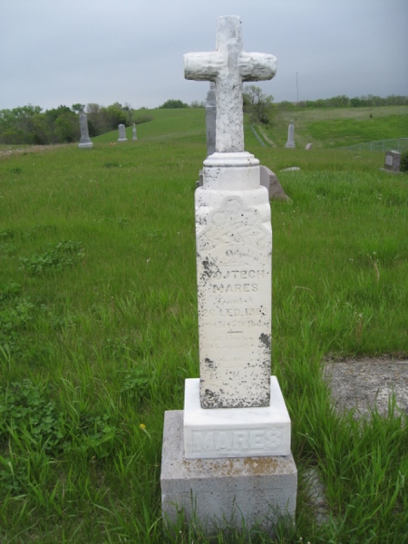 - Birth Date:3/1824Death Date:1/26/1903Spouse:Marie "Mary" (Bouzek) MaresParents:Tomas and Barbora(Vlasak) MaresChildren:Barbara, Katie, Anna Margaret, Susie, VictoriaObituary:Notes:Grave location:Section South, Lot 9