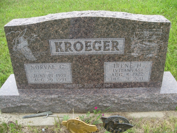 - Birth Date:6/21/1921Death Date:8/29/1991Spouse:Irene H. VitamvasParents:Edward and Anna KroegerChildren:Carolyn (Grey), Jane, Judy (McNally)Obituary:Notes:Grave location:Section North, Lot 14