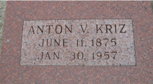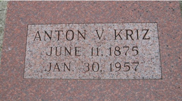 - Birth Date:6/11/1875Death Date:1/30/1957Spouse:Frances KarpisekParents:Jacob and Clara(Divis) KrizChildren:Phillip, Albin, Clara(Kaspar), Elizabeth(Hines), Blanche(Lillie), Frances(Stuchlik).Obituary:Notes:Grave location:Section North, Lot 15