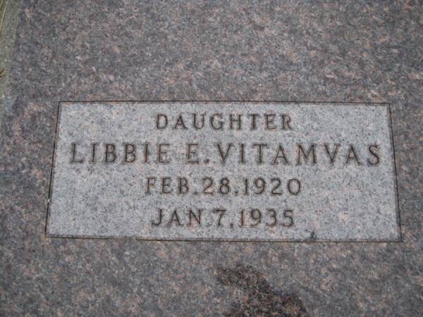- Birth Date:2/28/1920Death Date:1/7/1935Parents:Emil and Emily(Travnicek) VitamvasObituary:Notes:Grave location:Section South, Lot 17