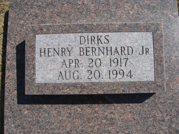 - Birth Date:4/20/1917Death Date:8/20/1994Spouse:Libbie M.Parents:Heinrich Bernhard and Blanche (Breckenridge) DirksObituary:Notes:Grave location:Section North, Lot 55