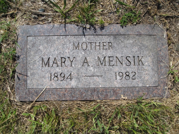 - Birth Date:5/28/1894Death Date:6/4/1982Spouse:Charles E. MensikParents:Henry and Anna (Macholan) PeltzChildren:Dale, Darline (Stewart)Obituary:Notes:Grave location:Section South, Lot 59
