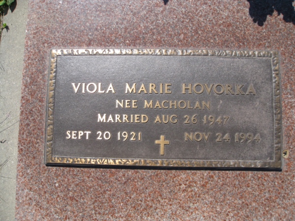 - Birth Date:9/20/1921Death Date:11/24/1994Spouse:Edward HovorkaParents:Joseph and Marie (Vech) MacholanChildren:Cheryl (O'Brien)Obituary:Notes:Grave location:Section South, Lot 74