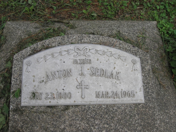 - Birth Date:5/23/1880Death Date:3/24/1965Spouse:Josephine (Rech) SedlakParents:John and Frances (Hladky) SedlakChildren:Veronica (Jakub), William, James, Emil, Antone, Helen (Zegers), Marie (Coufal)Obituary:Grave location:Section West, Block 3, Row 1, Grave 5