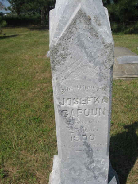 - Birth Date:3/1838Death Date:9/25/1900Spouse:Ignac CapounParents:Jan and Frantiska(Cech) CafourekChildren:John A., FrankObituary:Notes:Grave location:Section 5, Lot A5, Grave 2