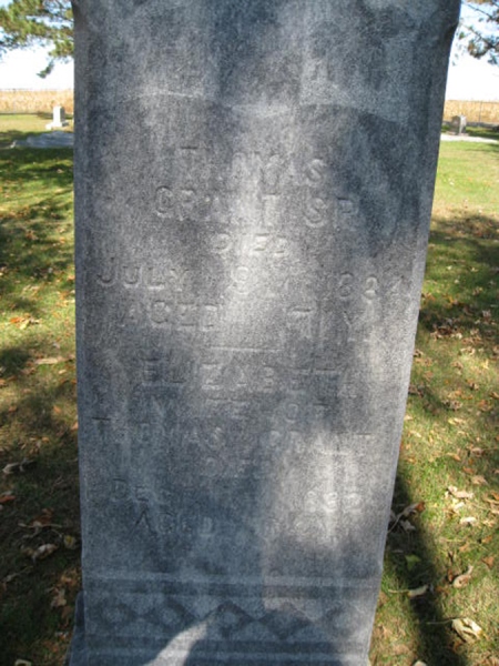 - Birth Date:1818Death Date:12/1/1882Spouse:Thomas Grant Sr.Children:Lawrence, Mary (Gray), Bridgette (Foley), Elizabeth (Mullally), John, Thomas, WilliamObituary:Notes:Grave location:Block 13, Lot 4, Grave 8