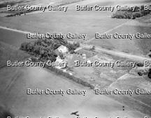 Aerial view of farm residence northwest of town - 1 neg.